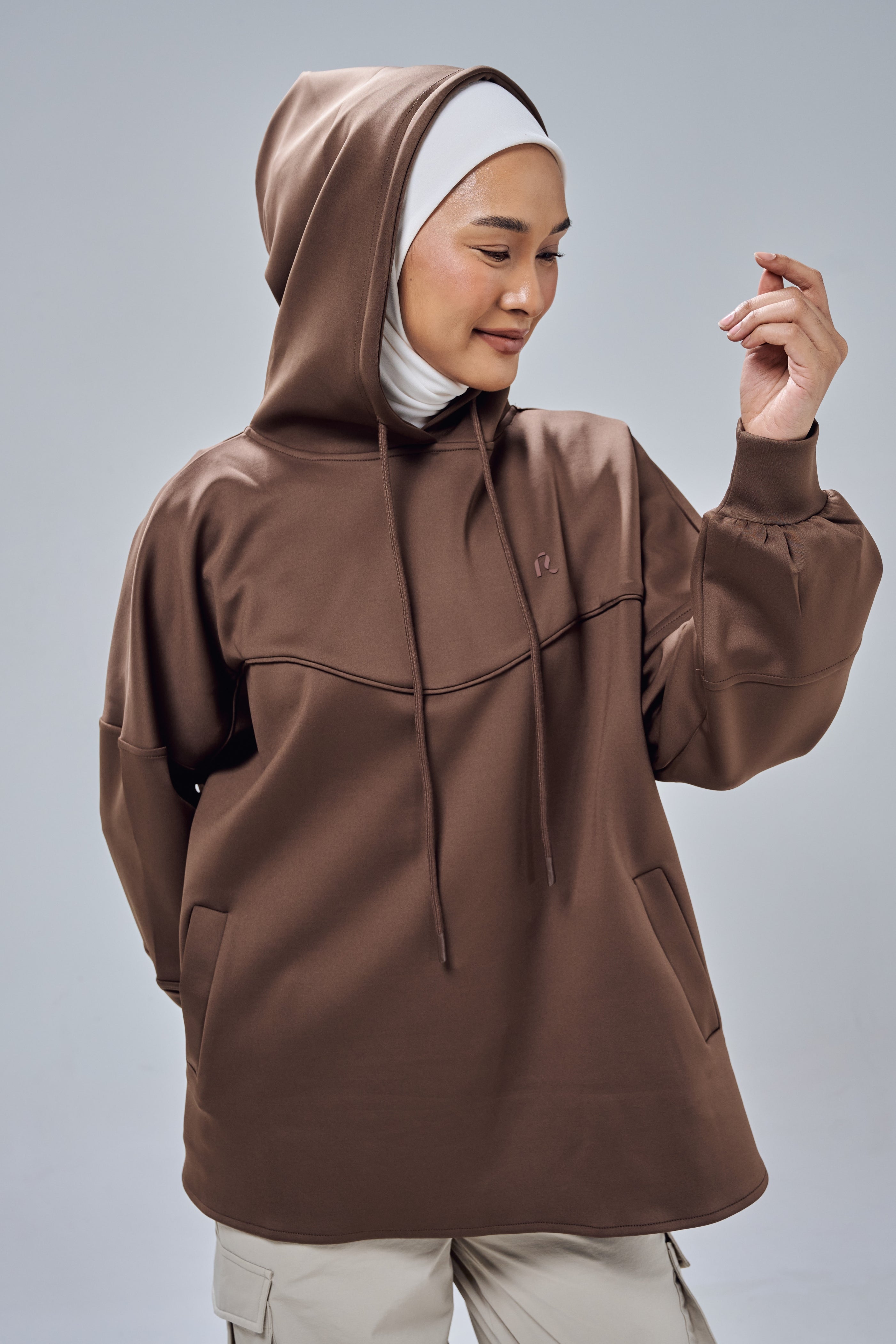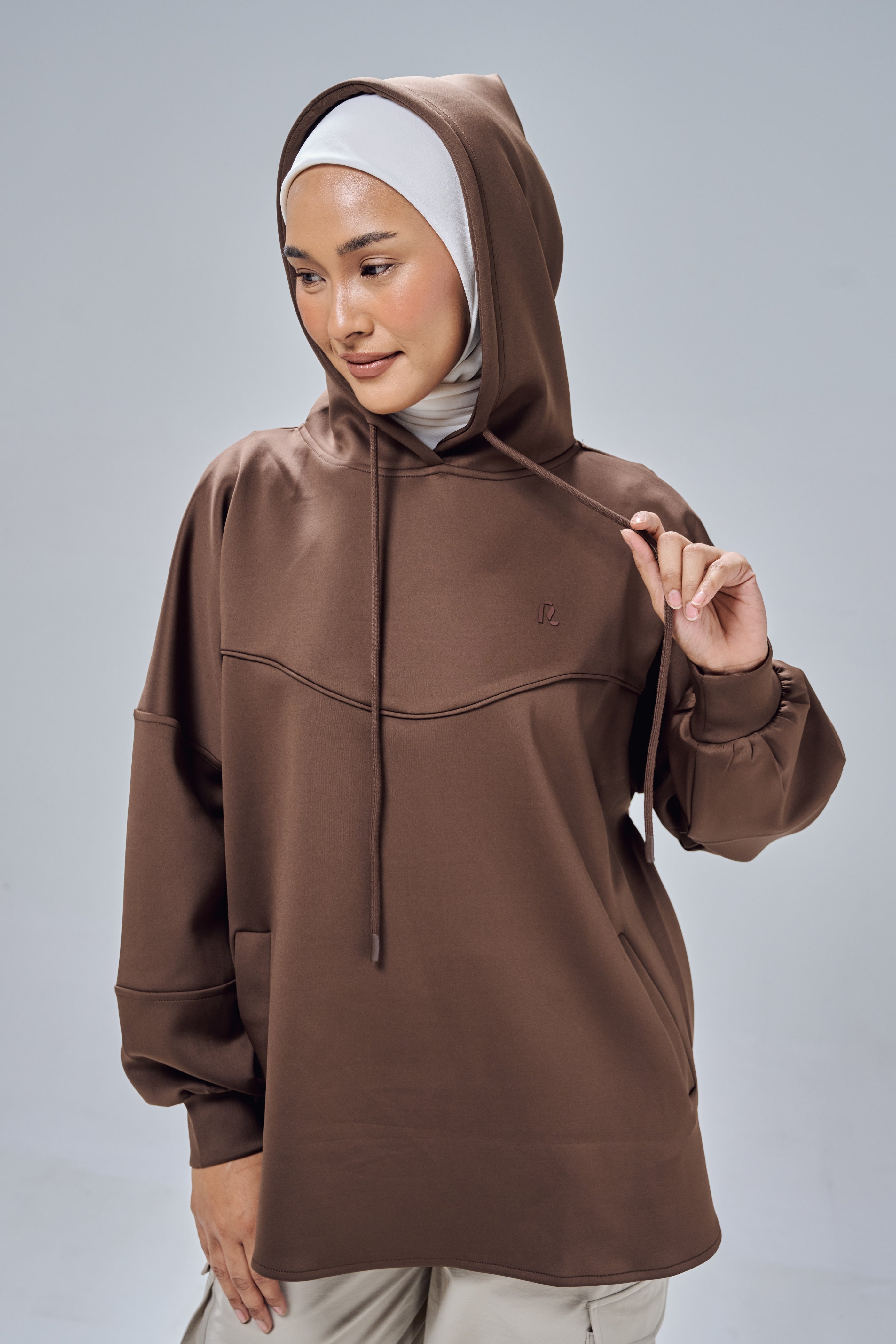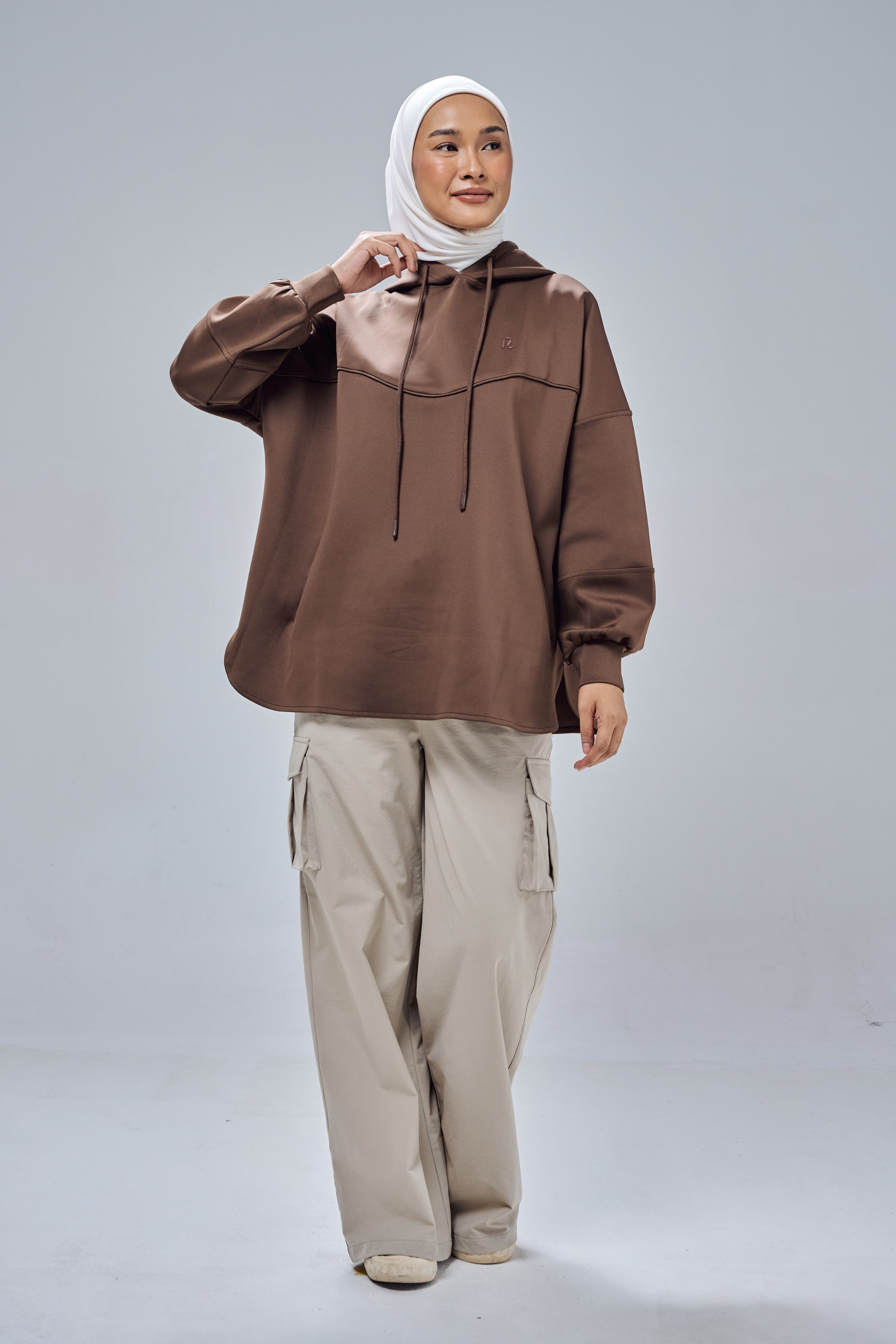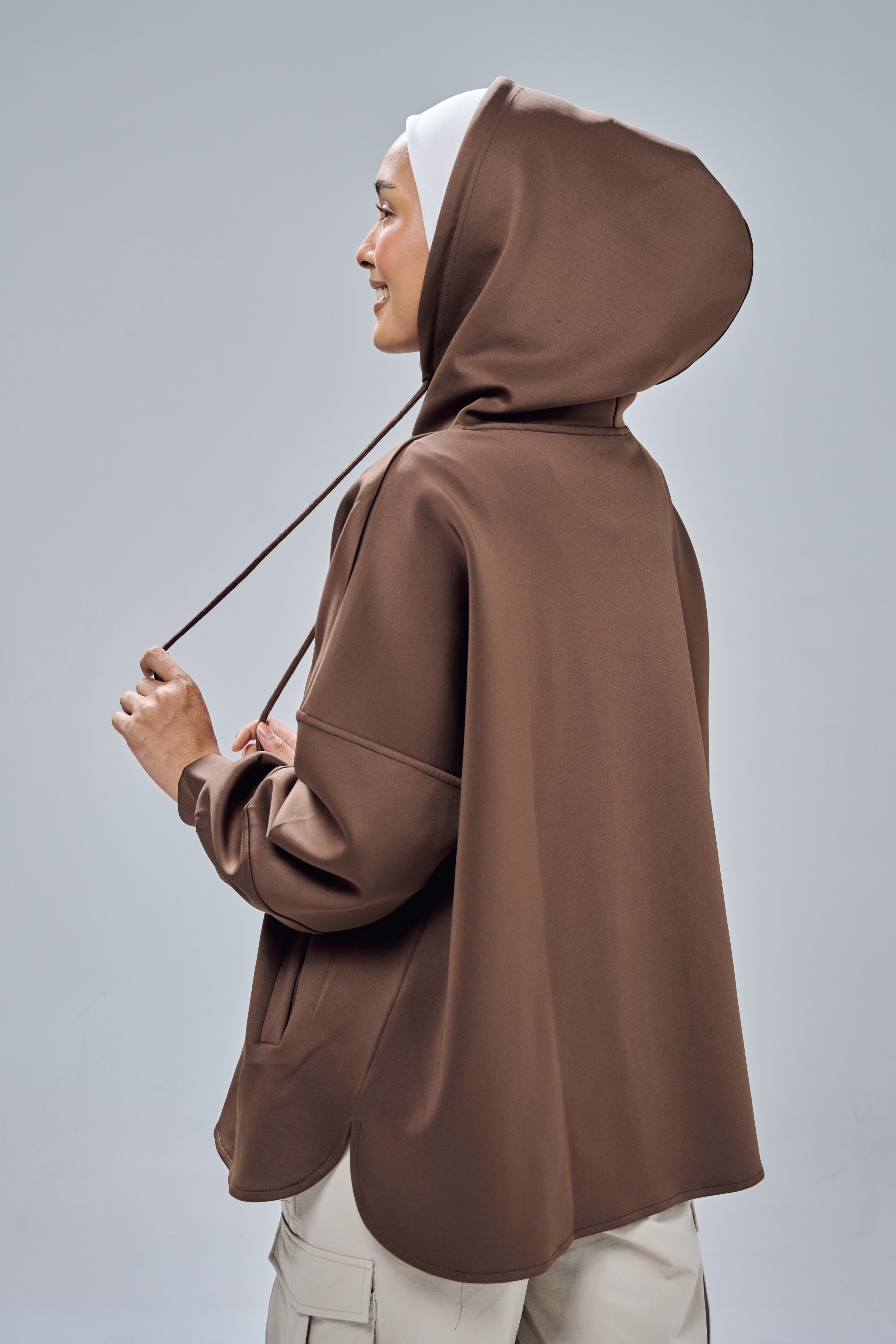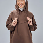 Made to be your favourite piece for on-the-go and travelling occassions, Nadine Hoodie Top comes with practical elements such as attached hoodie with strap, two front pockets and a modest cutting design. It's meant to be easy to wear and quickly gives you that stylish modest chic look.
