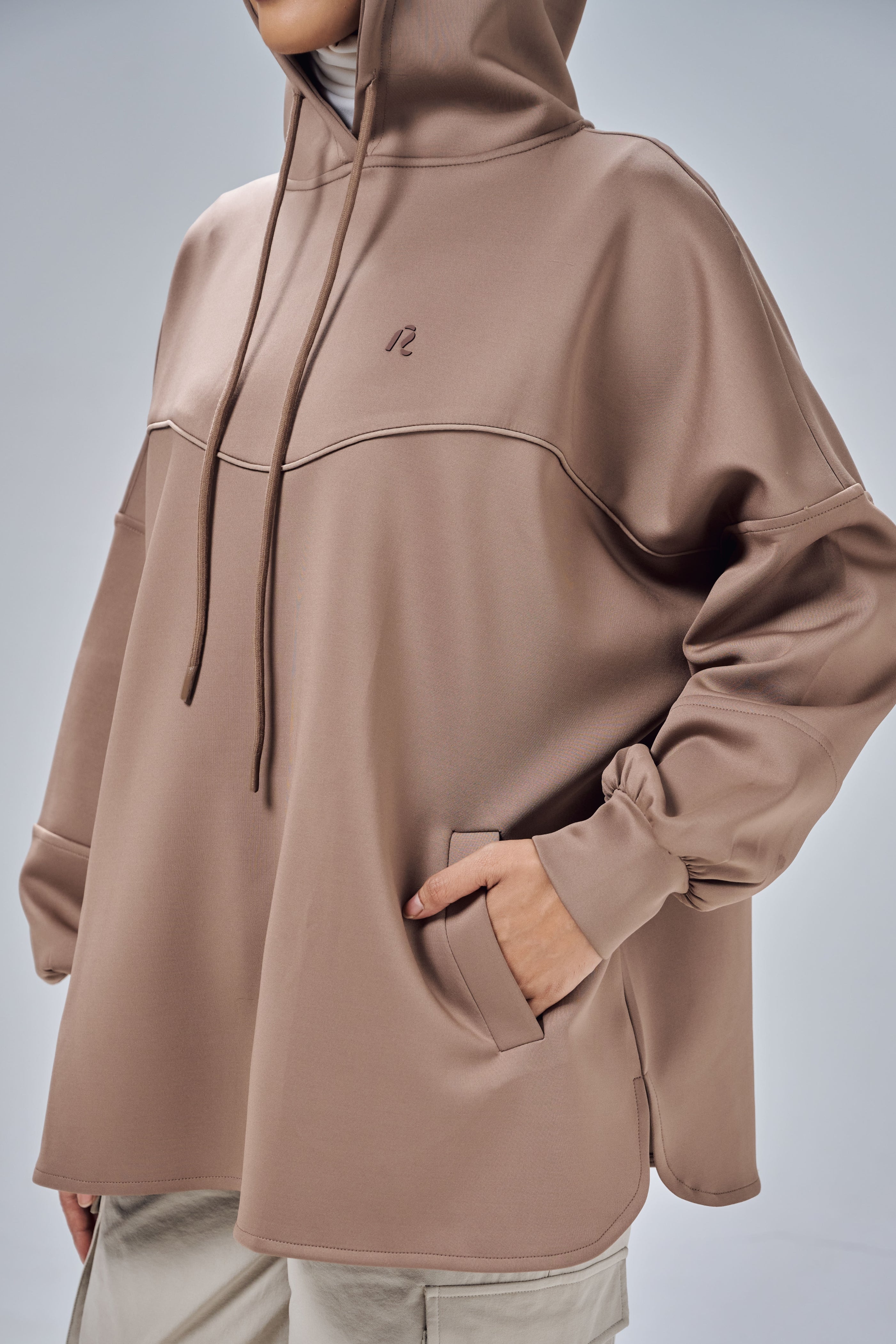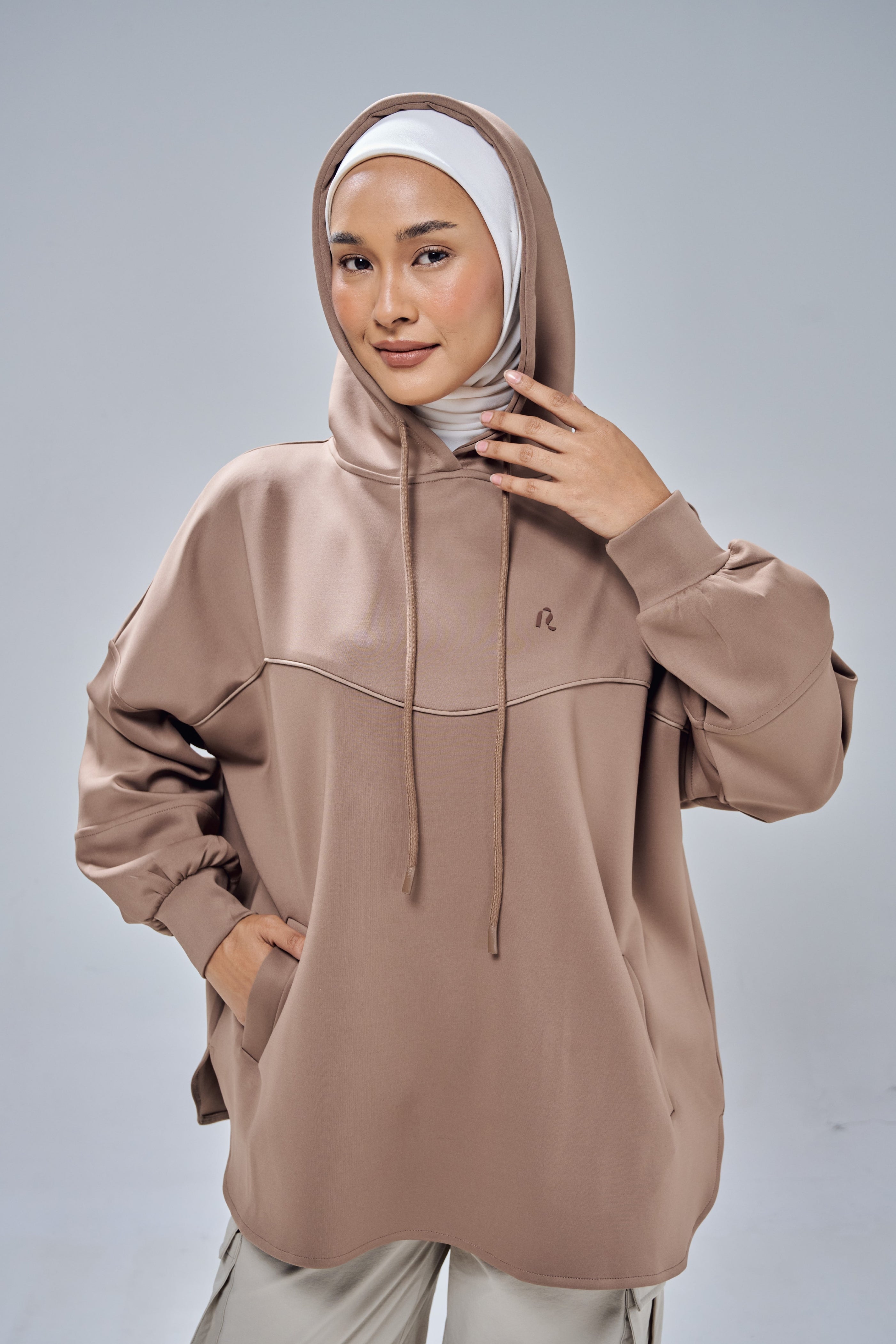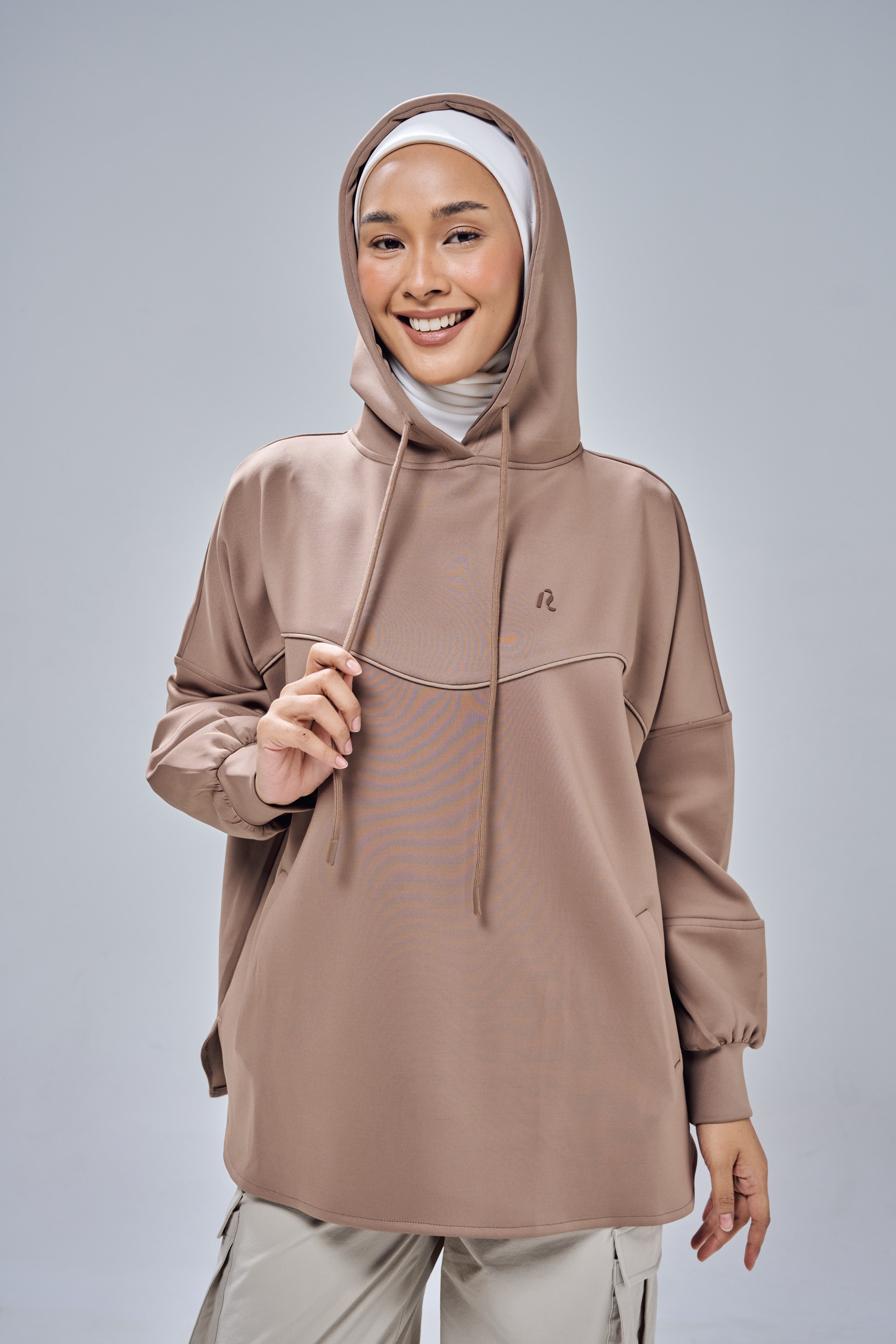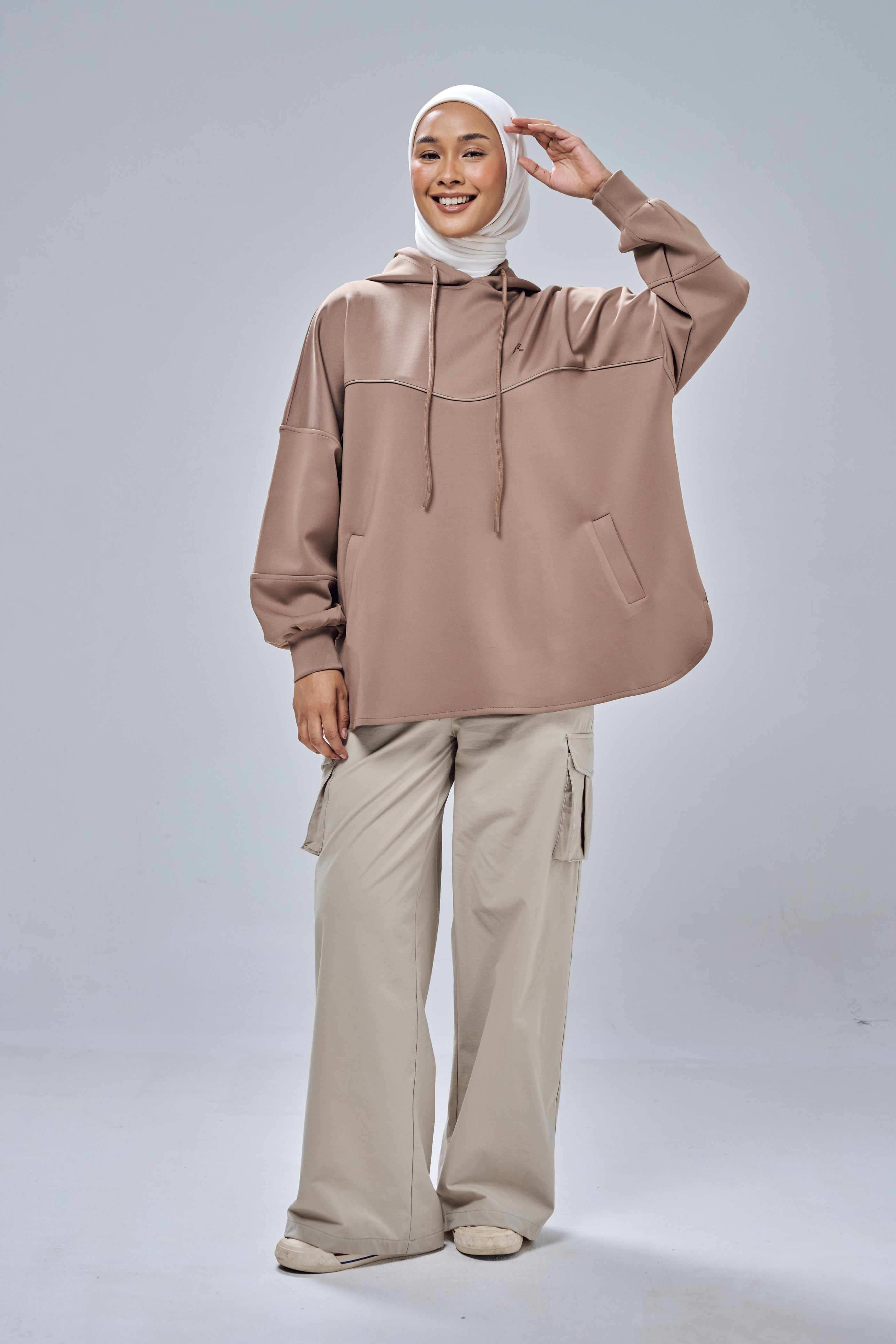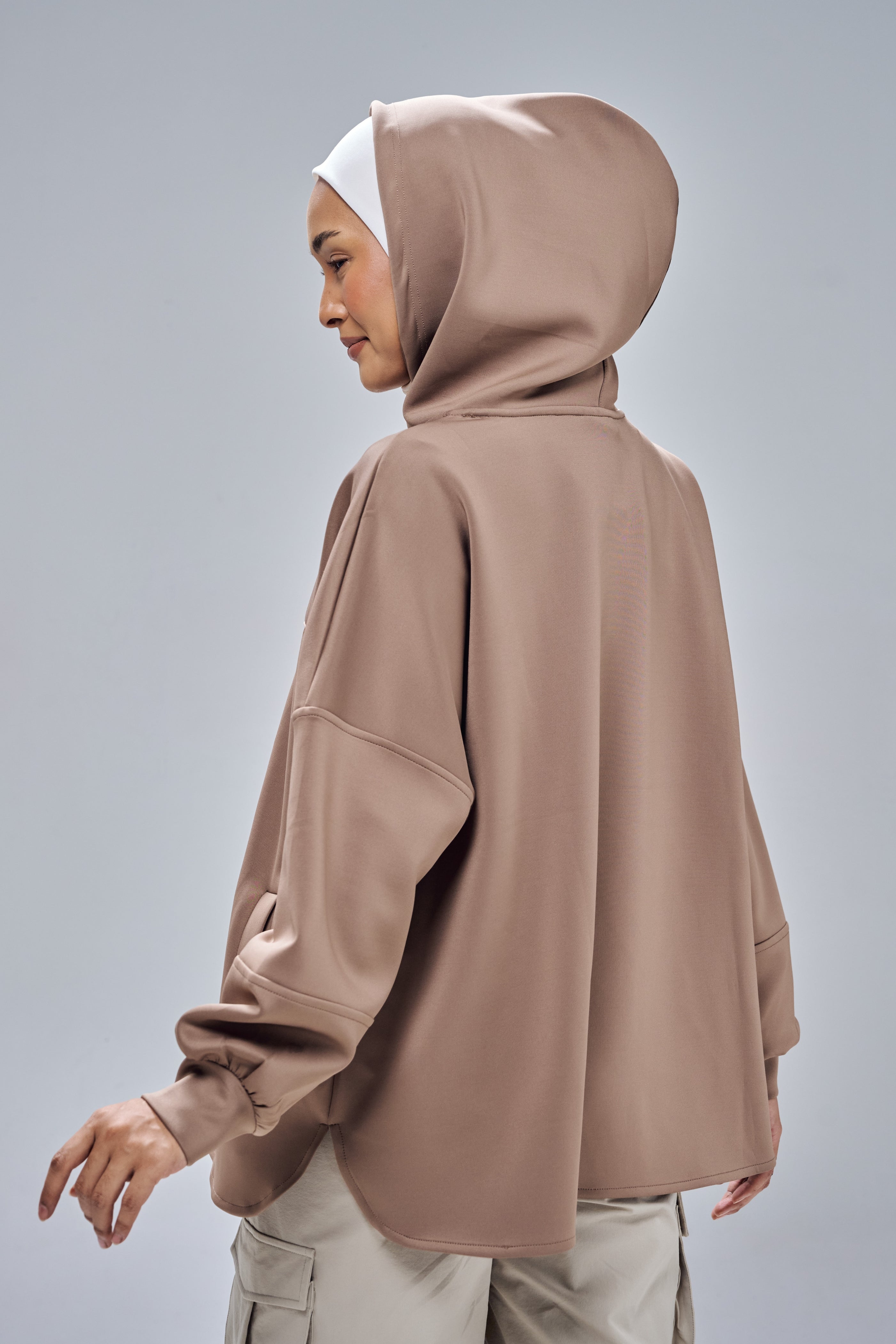 Made to be your favourite piece for on-the-go and travelling occassions, Nadine Hoodie Top comes with practical elements such as attached hoodie with strap, two front pockets and a modest cutting design. It's meant to be easy to wear and quickly gives you that stylish modest chic look.